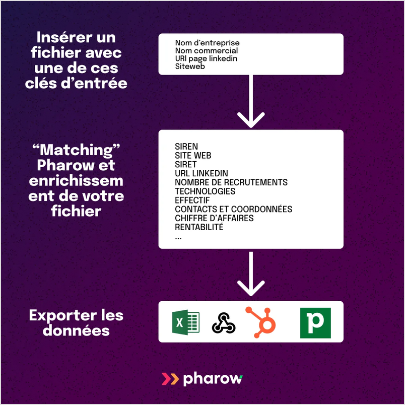 Résultat : Pharow transforme un simple fichier en une base exploitable, enrichie et fiable, vous gagnez en flexibilité et pouvez enrichir vos fichiers plus facilement, quel que soit le point de départ.
