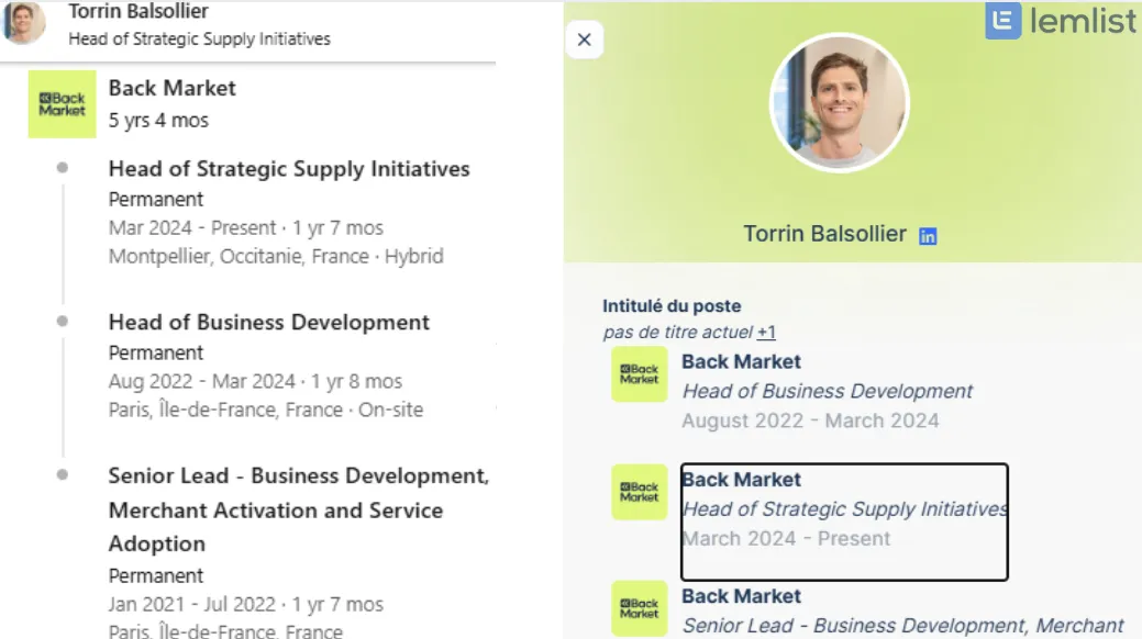 - Sur Lemlist : la recherche retourne 28 profils, dont plusieurs freelances et personnes n’ayant jamais travaillé chez Vipali.