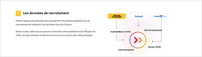 Exemple : une recherche sur Pharow pour identifier les éditeurs SaaS français de 20 à 49 salariés, avec levée de fonds récente et recrutement marketing en cours est faisable en quelques clics. Dans Lemlist, ces critères n’existent simplement pas ou nécessitent un tri manuel après export.