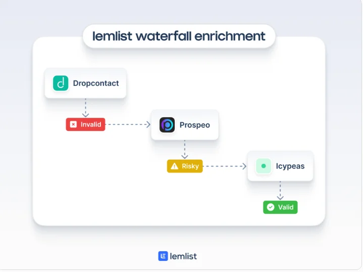 Lemlist utilise une cascade d’enrichissement combinant Dropcontact et Prospeo