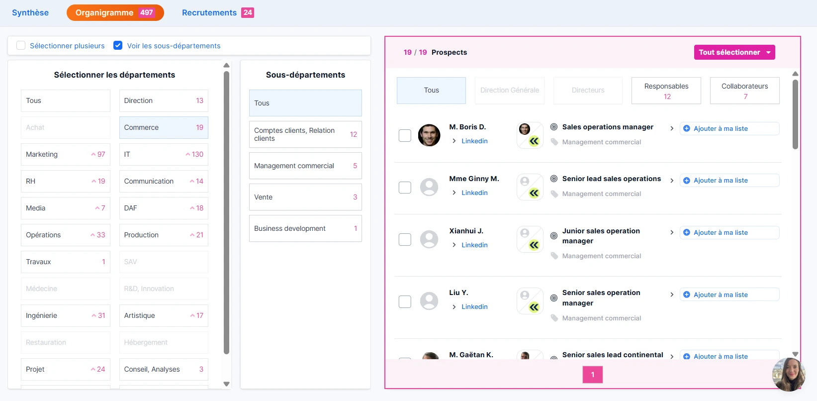 Résultat : vous perdez du temps à reconstituer manuellement la structure de l’entreprise et à identifier les bons interlocuteurs.