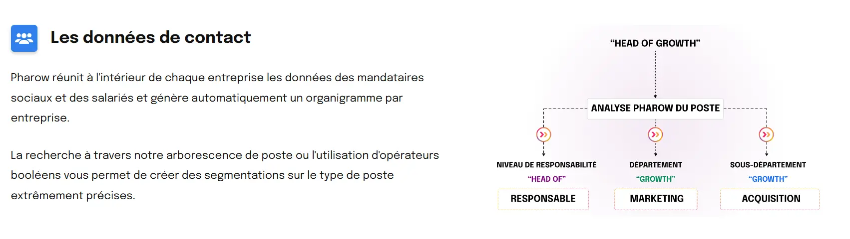 Cette couche permet de reconstituer les organigrammes et de cibler précisément les bonnes personnes au sein des entreprises.