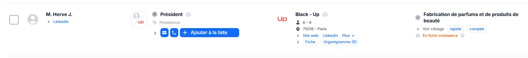 - Permet de trouver des contacts, d'affiner son ciblage selon son ICP avec précision et de les enrichir