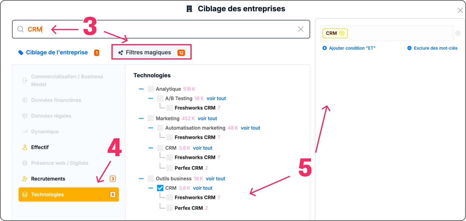 - Allez dans "Filtres magiques" > "Technologies" > "CRM"