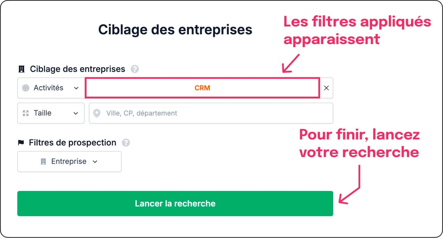 - Ajouter les autres filtres correspondant à vos ICP (taille, activités, localisation, etc.)