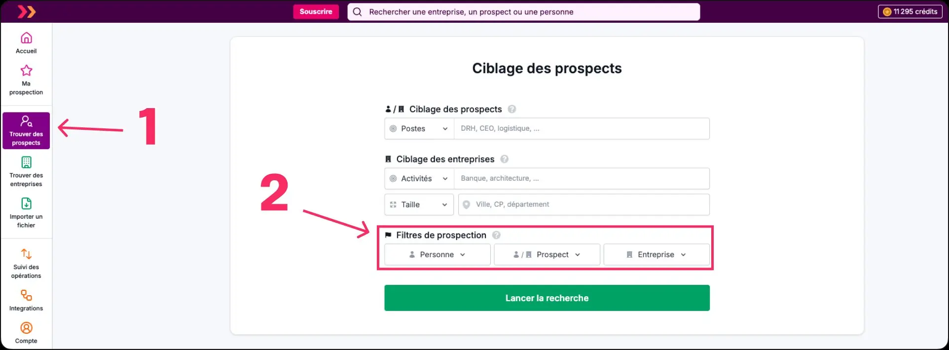 - Dans la barre à gauche sélectionnez "Trouver des prospects"