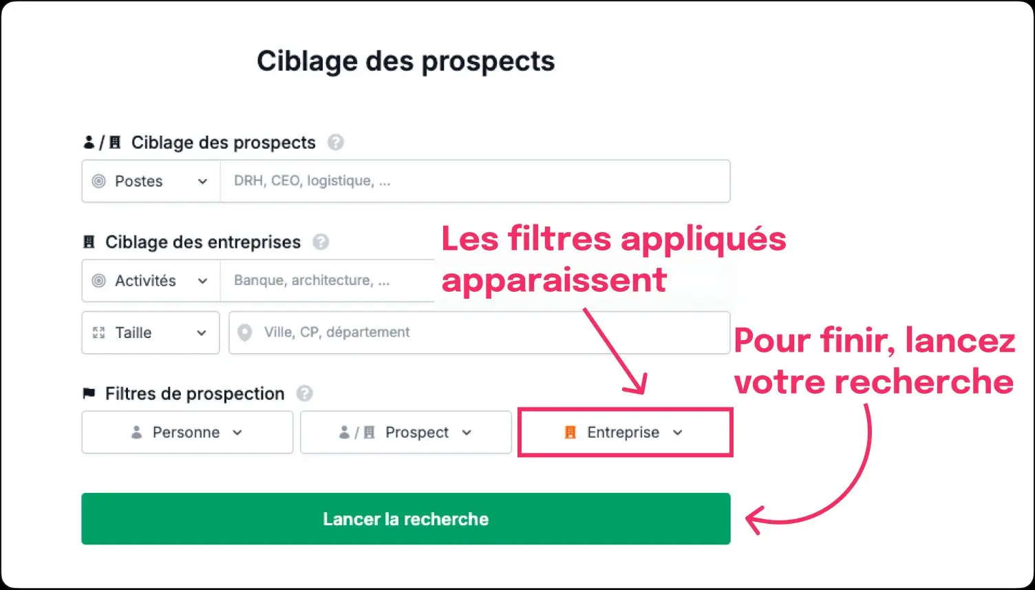 - Filtre de prospection : Entreprise