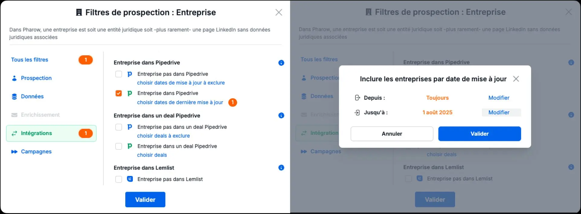 - Filtre de prospection : Entreprise