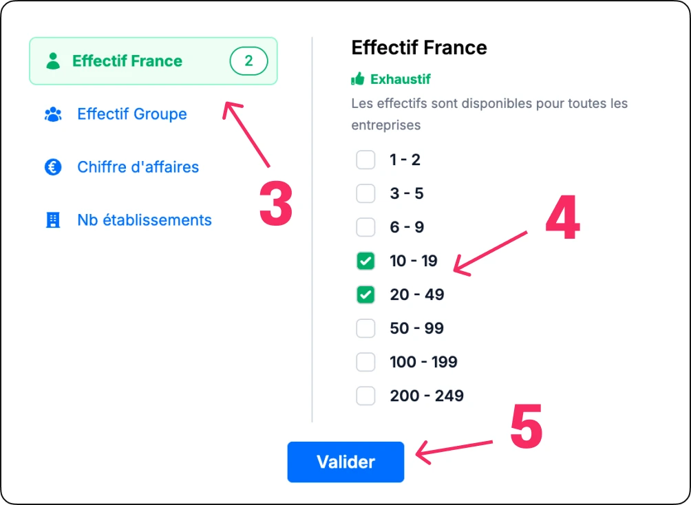 Pour filtrer les entreprises par taille sur un secteur précis, afin d'itérer votre campagne de prospection, des plus petits comptes aux plus grands (ou inversement).